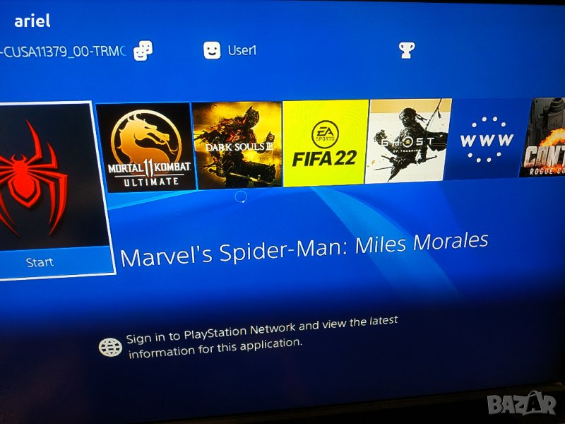 Oтключен PS4 Playstation 4 с Fifa 23 Spiderman MK11 и други
