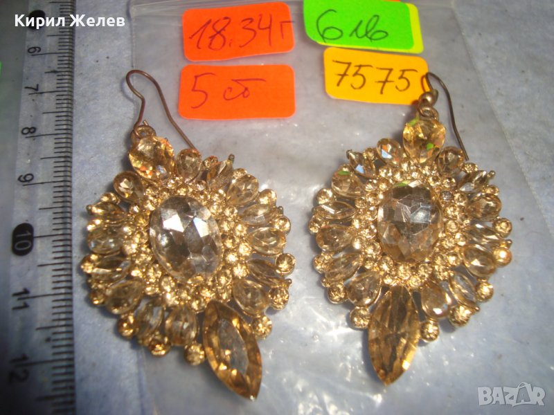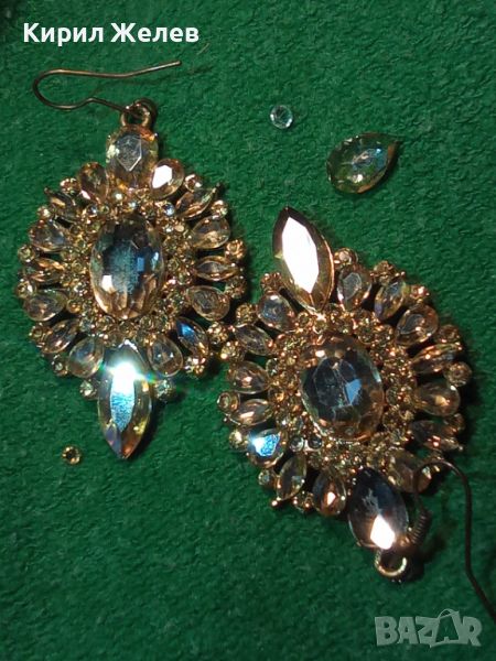 ПОЗЛАТЕНИ СТАРИ МЕДНИ АРТ ДЕКО ОБЕЦИ с ФАСЕТИРАНИ БОХЕМСКИ КРИСТАЛИ 7575