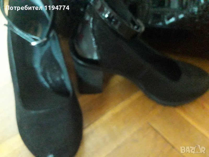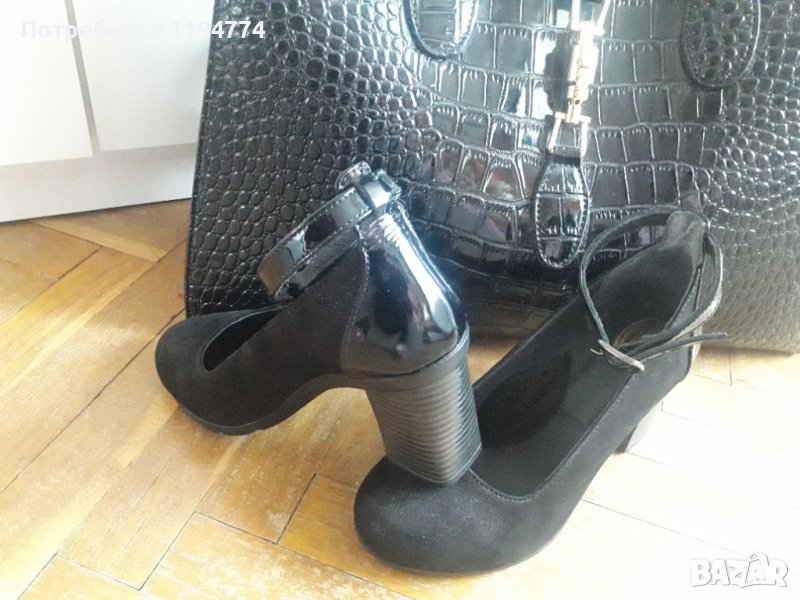 Естествена кожа и естествен лак. Ток 6 см. Стелка 22.7 см. Леки и много удобни.Купувани за 129лв. Нови. Отговарят си точно на размера. Съчетават се чудесно с чантата. Цена на чанта - 49 лв. При покупка на двата артикула - отстъпка.