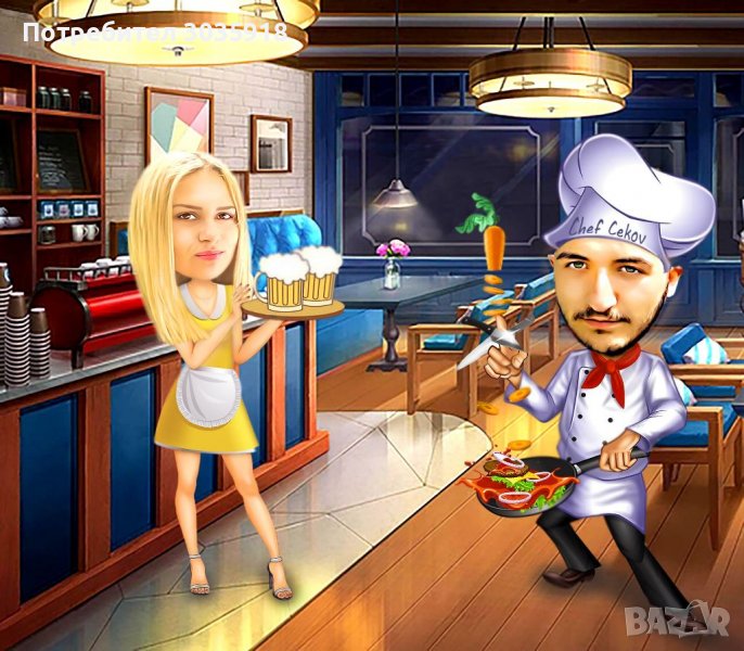 Колаж в стил карикатура, перфектен подарък, карикатури по ваша снимка, портрет,шарж,стилни подаръци → Обява 36625278