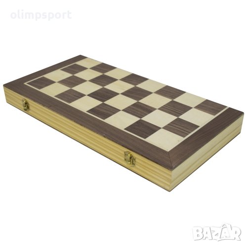 Комплект 3 в 1 класически настолни игри - шах, дама и табла, с интарзия от иглолистна дървесина.