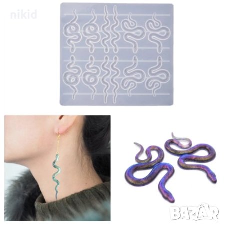 12 змии змия силиконов молд форма фондан смола обеци бижу украса декор → Обява 36628215