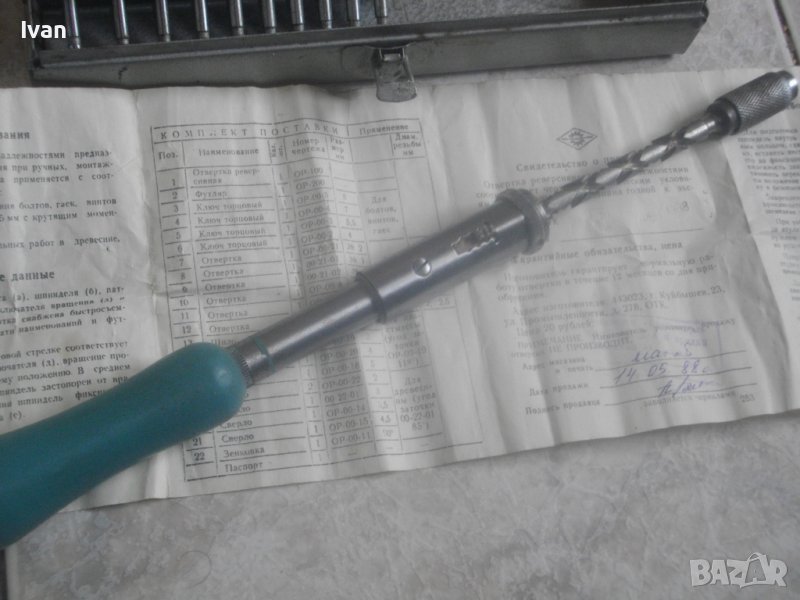 Цена на комплекта от обявата Реверсивна отвертка ръчна с 20 принадлежности - съветска - 199 лв.