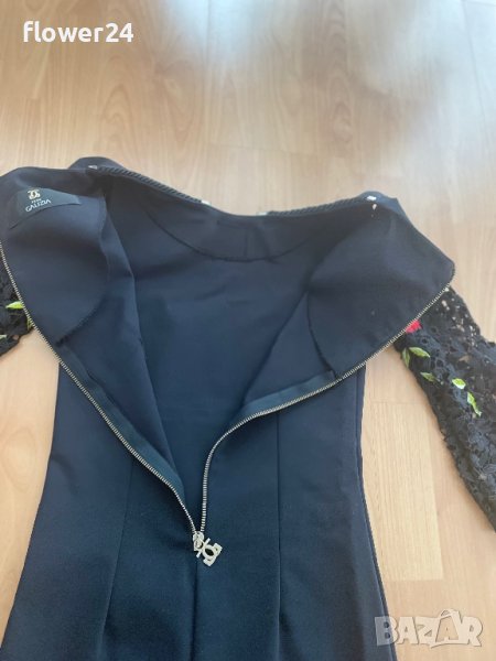 Уникално красива рокля Gizia. Разтяга се, размера й е XS, но тъй като се разтяга може да стане на дами, носещи размер от XS до М. Размери: бюст: от 76 см до 90 см, талия от 62 см до 70 см, ханш от 76 до 90 см, дължина от рамото 86 см, дължина на ръкав 37 см.. Обличана е един път на повод, без забележки или следи от употреба. Стои много красиво, много качествена материя и високо качество на изработка.