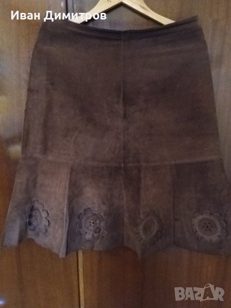 Дамска кожена пола велур с орнаменти цветя XL, L → Обява 36629894