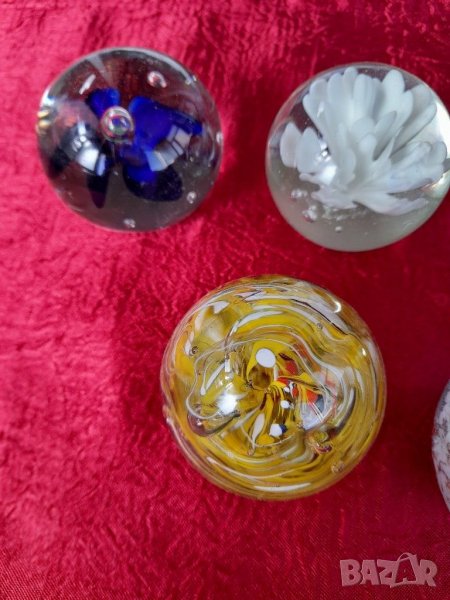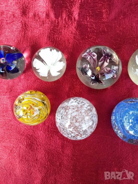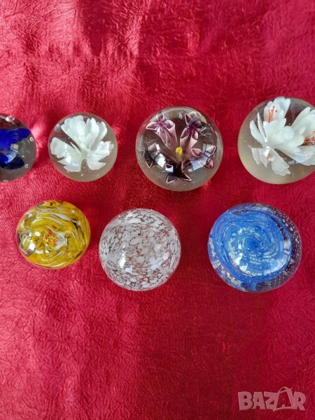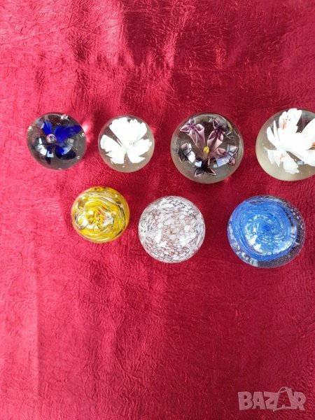 Преспае,Стари стъклени топки.Състояние видно на снимките изключително запазени няма удари, шупли,пукнато и т.н. като нови. За колекционери, интериор, декор, подарък. При покупка на всичките цена по договаряне.Трите бр.в ляво големина 6.5 см.и вис.5 см.4бр.в дясно големина 7.5 см.и вис.6 см