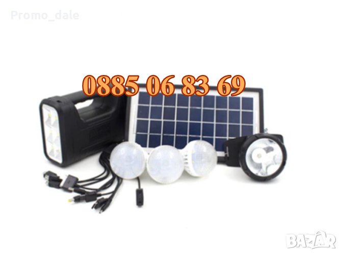ОМПЛЕКТ LED СОЛАРНА ОСВЕТИТЕЛНА СИСТЕМА, Solar Home Lighting System с АКУМУЛАТОР и СОЛАРЕН ПАНЕЛ + 3бр. LED диодни КРУШКИ / ЛАМПИ + ЧЕЛНИК