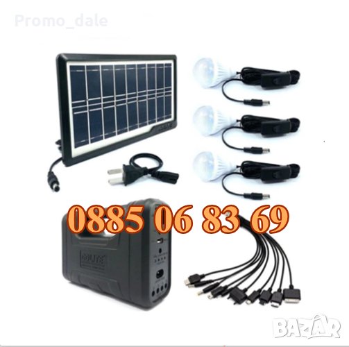 Благодарение на иновативните технологии, соларната системата е в състояние да зарежда акумулатора, не само в ясен ден, а и в условията на сумрак или неблагоприятни климатични условия. В комплекта са включени 3 ярки LED крушки с входящо захранване DC 6V. Лампите се захранват от акумулатор, който се зарежда от 220V или от слънчев панел. Устройството може да зарежда и различни GSM устройства.