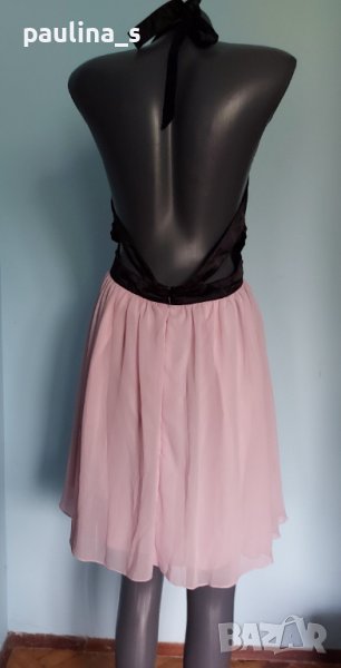 1. "Lipsy" Изумително красива вечерна рокля с бюстие и гол гръб от копринен шифон, Англия. Черният сатен и подплата в долната част са от копринена материя. Роклята е голям размер 14UK 42/44EU, вижда се как е фиксирана за снимките. Роклята е обличана само на манекен в магазин.