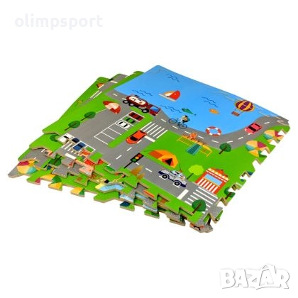 Настилка с размери 61х61х1 см, 4 броя в комплект с картинка Улично движение. Подходяща за употреба като настилка за детски игри у дома и в детски градини. Сглобяване тип пъзел, бързо и лесно. Размери на 1 модул - 61х61х1 см. 4 модула покриват приблизително 1.45 кв. м.