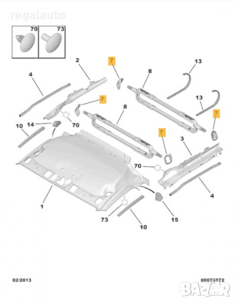 8335PR,декоративни капачки тапицерия таван CITROEN BERLINGO,PEUGEOT PARTNER 2007- → Обява 36639682