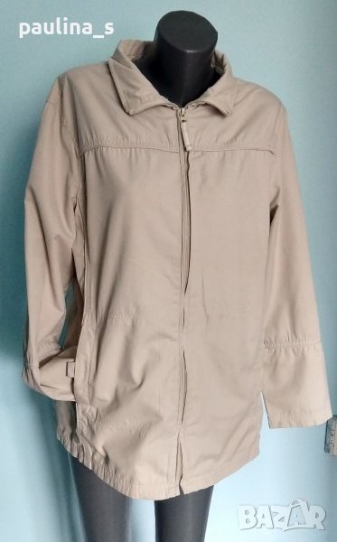 2. XL / 2XL - Екрю/Нюд манто от микрофибър с хастар и висока яка, леко разкроен модел с коси джобове и реглан ръкави, без дефекти - цена 9,99лв