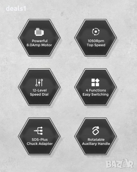 Задвижете ударната бормашина до максимална скорост от 1050 об/мин и максимална скорост на удар от 5200 удара в минута.