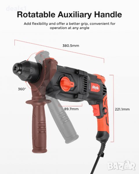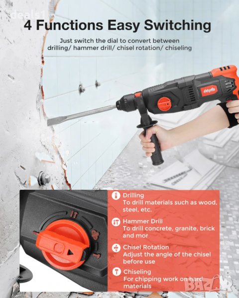 4 функции в 1 копче. Просто превключете циферблата, за да преобразувате между пробиване/пробиване с чук/въртене на длето/длето.