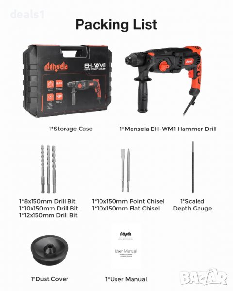 ● 1/2-инчов SDS-Plus адаптер за патронник.