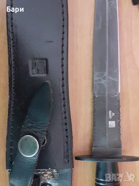 Продавам изключително качествена тактическа кама ,в много добро състояние.Тя е направена в Япония ,изцяло от стомана с маркировки AL Mar ,SEKI-JPAN и логото на фирмата .Има оригинална кожена кания с логото(топъл печат)