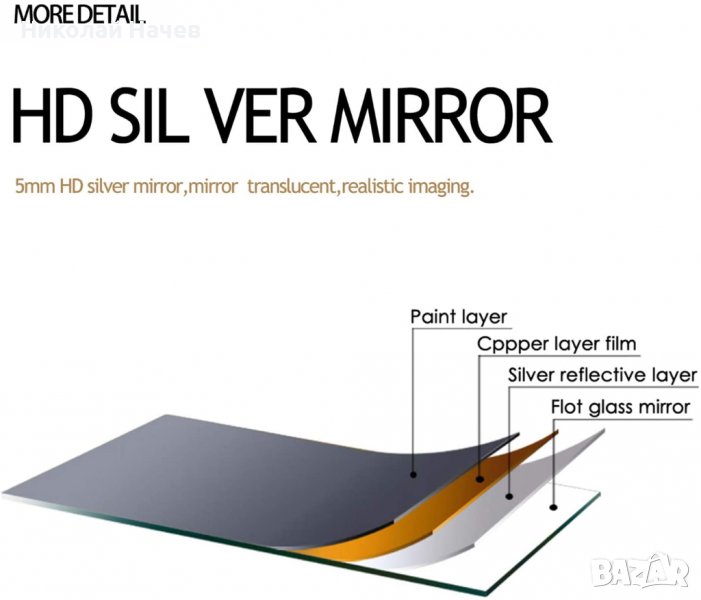 Рамката на огледалото е изработена от алуминиева сплав и е