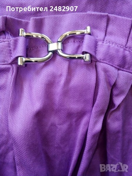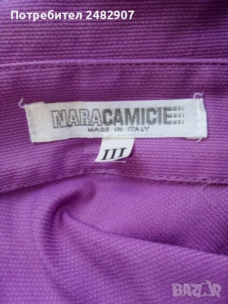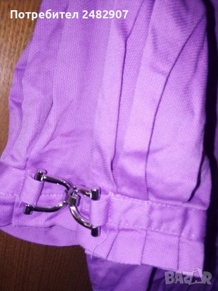 Дамска риза в бледо лилаво с метални орнаменти на ръкавите. Размер S, съдържа 97% памук и 3 % еластан. Ширина в раменете - 39 см, дължина от рамото до долу - 61 см. Много запазена, леко вталена, обличана е веднъж за повод.
