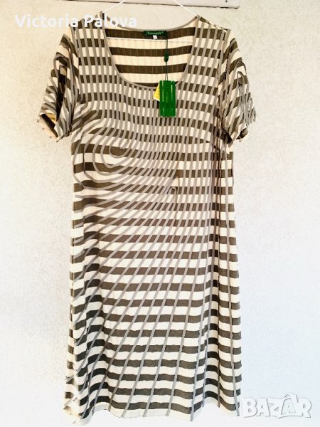 Впечатляваща рокля-бижу,тежка разтеглива материя,не описва дефекти на фигурата,свободна кройка и красиви декорационни елементи.рамене(без разтягане)-42см,ГО-52см,дължина-107-108см.