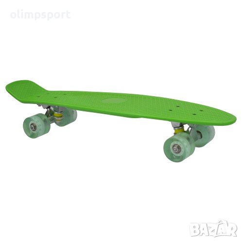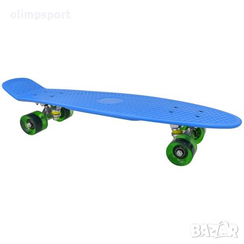Скейтборд, пени борд с дължина 67 см. Подходящ за начинаещи скейтъри, които искат да открият забавлението от карането. Здрава и гъвкава дъска, изработена от високоустойчива ABS пластмаса. Релефно набраздена против приплъзване. Издръжливо алуминиево шаси. Лагери - ABEC 7. Диаметър колела – 60 мм. Ширина колела - 45 мм. Материал колела - PU. Максимално натоварване - 100 кг. Отговаря на изискванията за безопасност - EN 13613. Размери дъска – 67х19 см. Дебелина дъска – 1.5 см. Тегло – 2.25 кг.