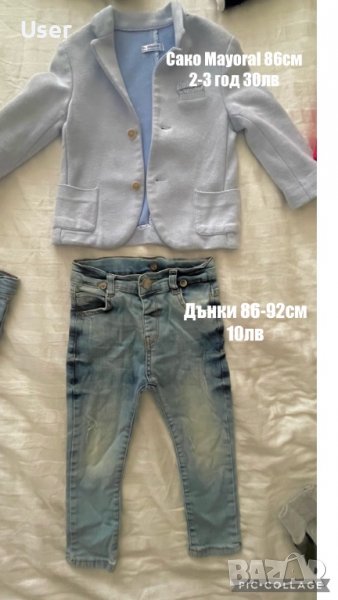 На всяка една снимка цените и размерите са посочени, за допълнителни снимки или измервания мога да съдействам, пишете на лично. Всички дрехи са много запазени, като едни от тях са дори с етикети.