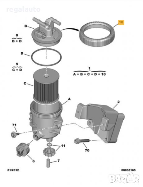 191426,завиващ се ринг за кутия гор.филтър CITROEN BERLINGO,PEUGEOT PARTNER I,II,HDI,DW10TD → Обява 36656449