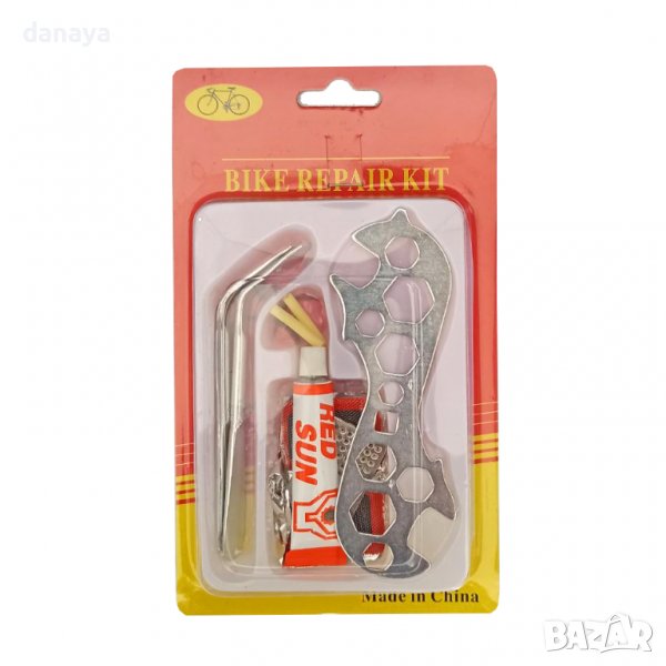 Комплект от 12 елемета за ремонт на спукана велосипедна гума. Джобни инструменти от първа необходимост, ако спукате гума насред пътя. Комплект, който всеки велосипедист трябва да притежава. Лек и лесен за пренасяне. Комплектът е подходящ за колоездачи, които предприемат кратки или дълги пътувания.