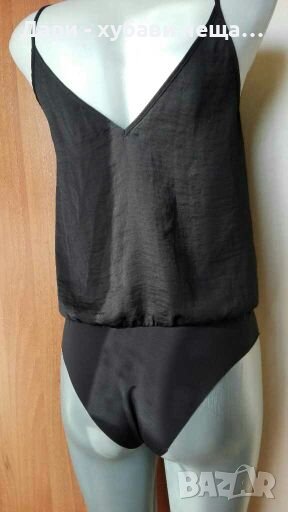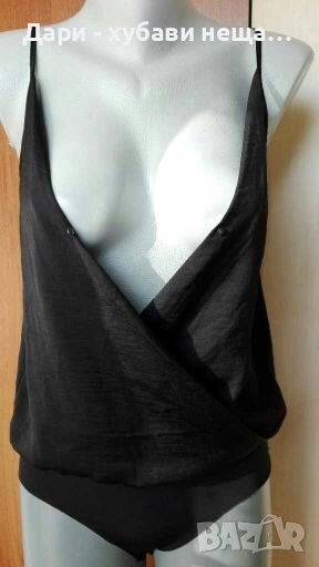 Много лека материя, без прозрачност.На допир наподобява малко коприна, а долната част е от материя, подобна на безшевните бикини.Може да се облече и за повод.Идеални е за комбинация с дрехи с ниска талия, защото няма да се разпасва, а същевременно прикрива и леки несъвършенства(ако има).