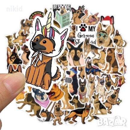 50 бр куче Немска Овчарка кучета самозалепващи лепенки стикери за украса декор картонена торта → Обява 36662027