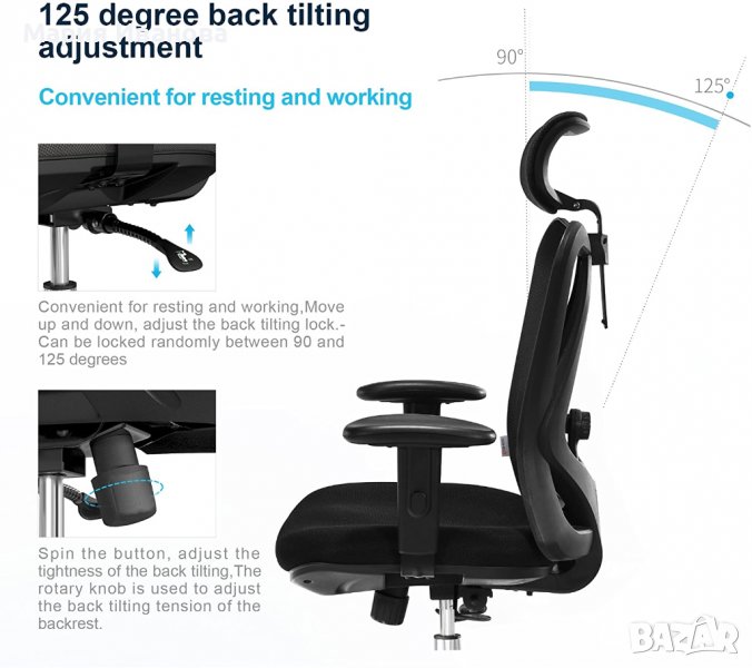 на облегалката е подвижна, може да бъде нагласена по цялата дължина на гръбнака