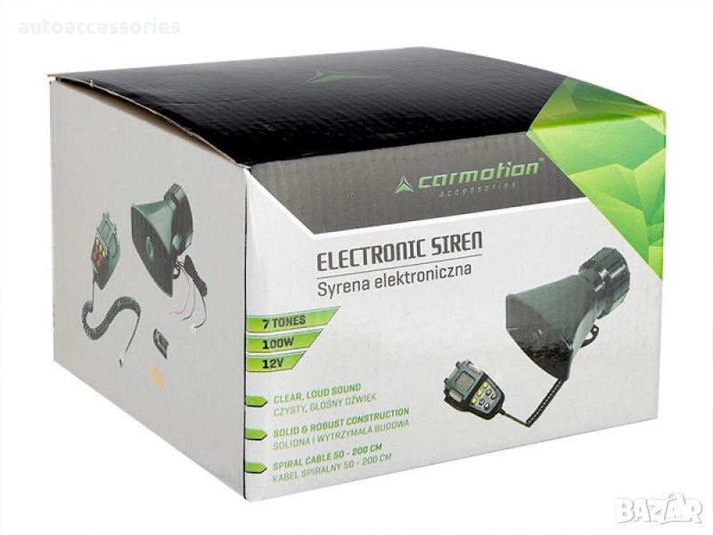 Сигналът се управлява от бутони на мегафона. Звукът е ясен и силен. Сирената е изработена от здрав и издръжлив корпус, който е устойчив на повреди.