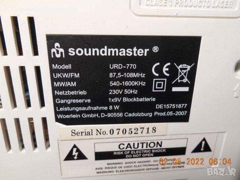Soudmaster URD-770 CD FM Alarm Clock → Обява 36665893