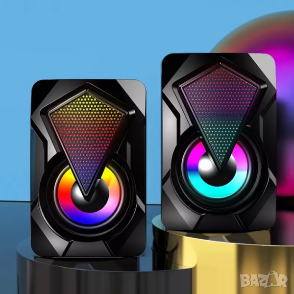 Геймърски USB колони за компютър гейминг светещи колонки за лаптоп, телефон, десктоп, тонколони LED