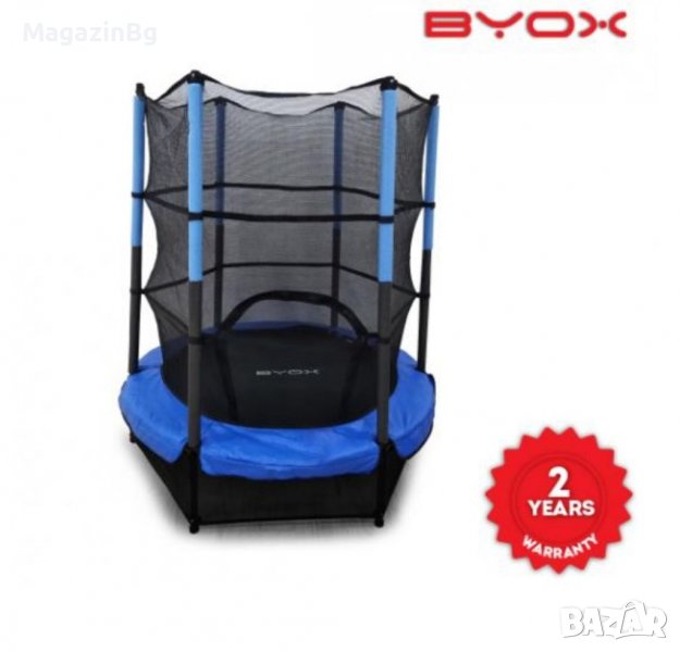 Батутът е с диаметър 140 см, височина от повърхността до батута - 35 см и височина на мрежата 125 см.
