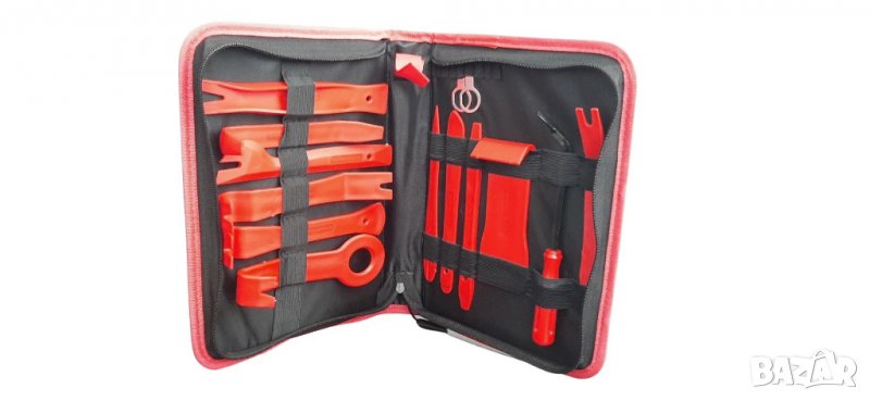 - 11 инструмента за разглобяване на пластмаса, подсилени със стъклени влакна, с шлицови, прави и ъглови конструкции, за демонтиране на декоративни ленти, огледални стъкла, капаци и панели в интериора и екстериора на купето.