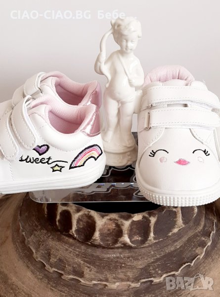 №18-№23, Бебешки обувки за момиче, бели с цветни декорации BUBBLE KIDS