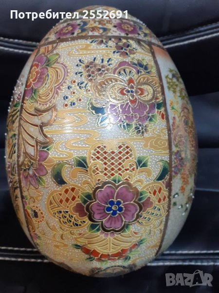 Винтидж порцеланово, ръчно рисувано,със злато яйце. Азиатско изкуство "SATSUMA" Цветя и птици. Височина- 21см. Ширина- 14см.