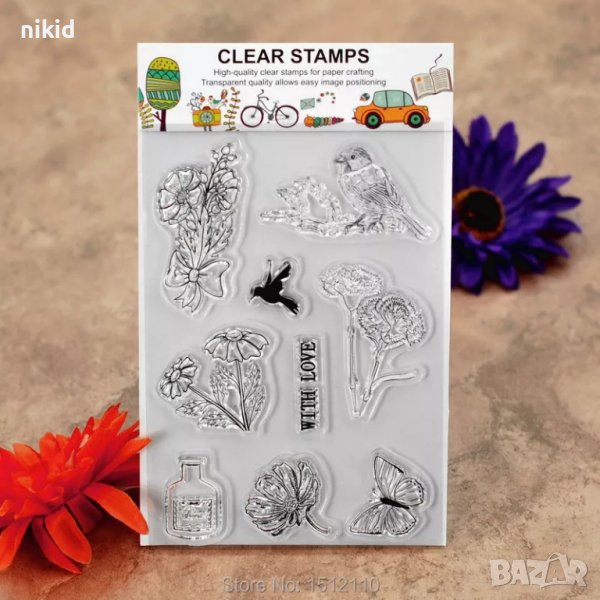 Цветя карамфил пеперуда шише Птичка врабче силиконов гумен печат декор бисквитки фондан Scrapbooking, снимка 1 - Други - 36672873 Цветя карамфил пеперуда шише Птичка врабче силиконов гумен печат декор бисквитки фондан Scrapbooking, снимка 2 - Други - 36672873 1/2