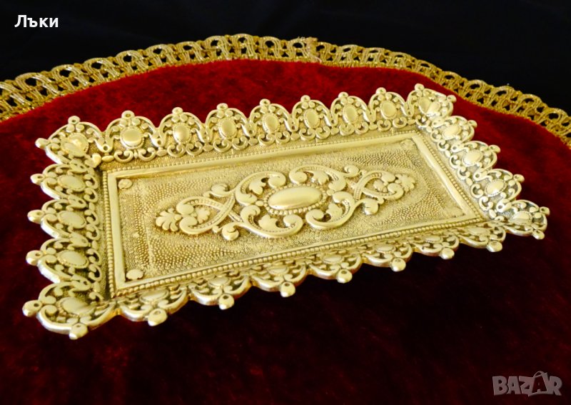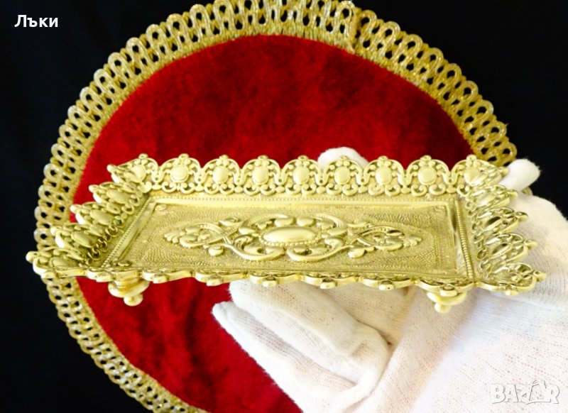 злато.Има четири стабилни релефни крачета.Много старинна технология,смайваща приказна