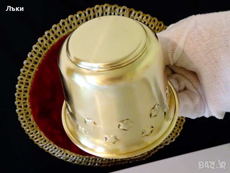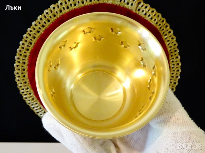 месинг,декорирана с релефно ковани звезди.Много ефектна,златна чаша.Височина 7