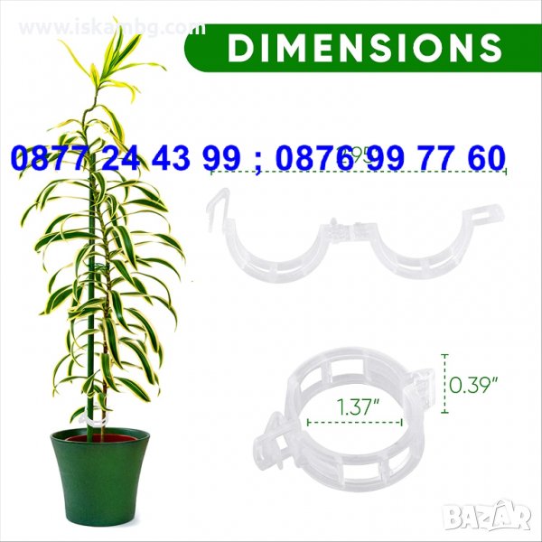 - Щипката позволява безпрепятствено закачане на растението към подпорната конструкция