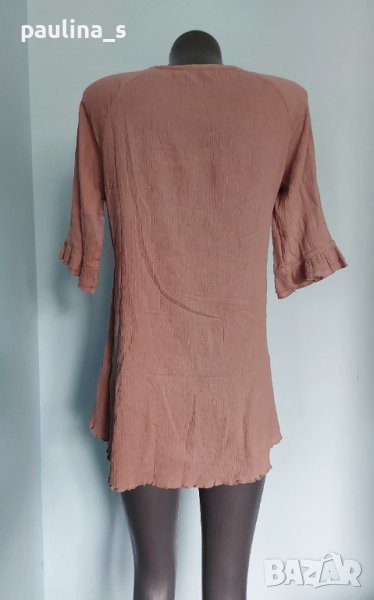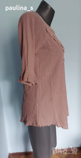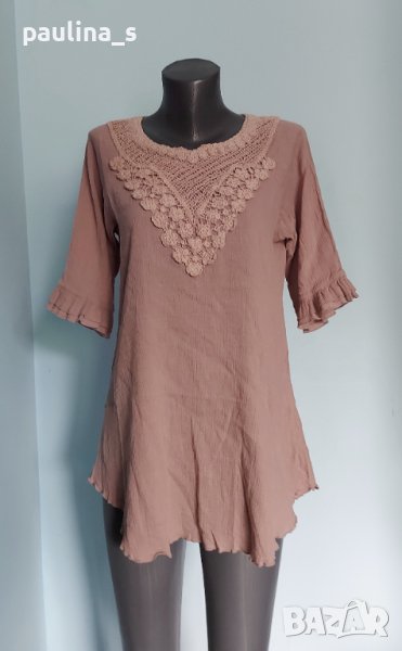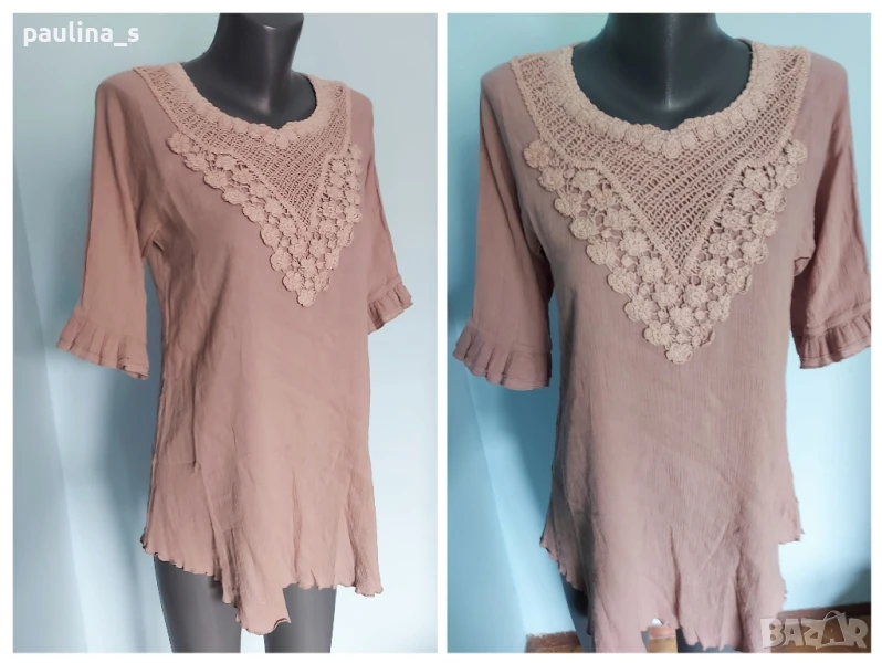 1️⃣. Колаж / L / 2XL - "Saint Tropez". Цената е крайна 24,99лв / 12,5 евро. Изумително красива туника с декорации от ръчно изработена дантела. Материята е памучен кенар с измачкан ефект, много фина и има еластичност, покрива няколко размера моделът е с реглан ръкави и къдри, леко втален силует и заоблени краища на