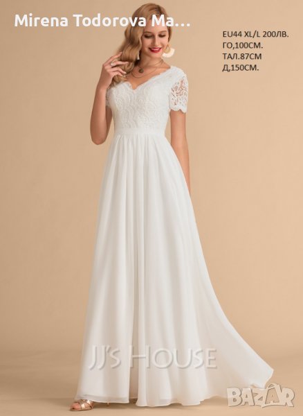 Сватбена рокля от шифон с V-образно деколте с дължина до пода. EU44 XL/L 200лв., снимка 1 - Рокли - 36676886 Сватбена рокля от шифон с V-образно деколте с дължина до пода. EU44 XL/L 200лв., снимка 2 - Рокли - 36676886 Сватбена рокля от шифон с V-образно деколте с дължина до пода. EU44 XL/L 200лв., снимка 3 - Рокли - 36676886 1/3