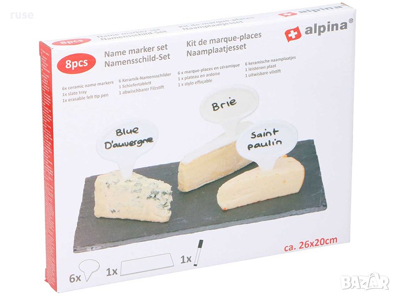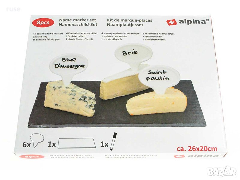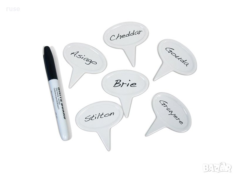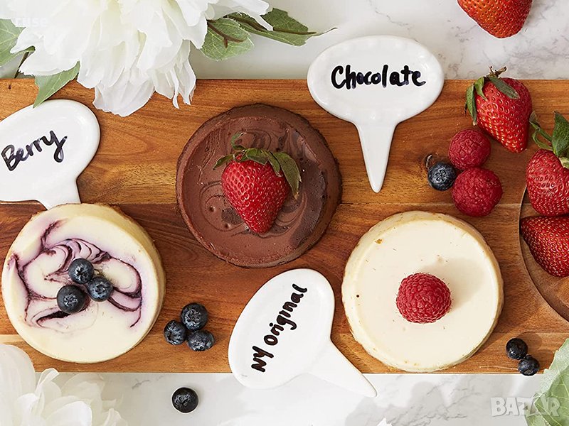 Комплектът включва и 6 порцеланови табелки с триещ се маркер, което ще приаде оригинален завършек на сервирането.