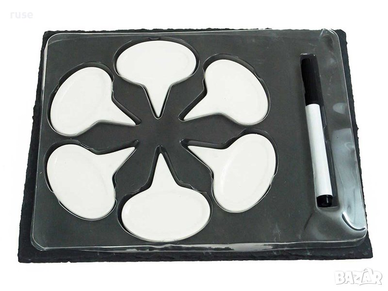 НОВИ! Шистова плоча 26х20х1см с керамични табели за сирена 6 броя
