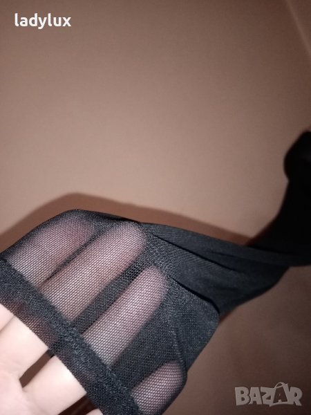 Отвътре е със светла подплата, а отвън черен тюл.