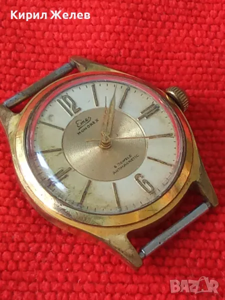 EMES MONOREX 4 jewels ANTIMAGNETIC стар ВИНТИДЖ 50-60те Год НЕМСКИ ПОЗЛАТЕН МЕХАНИЧЕН ЧАСОВНИК 26945