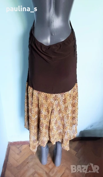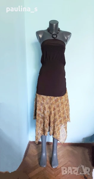 2️⃣. Колаж / XL / 3XL - "Entrancy". Цената е крайна 29,99лв / 15 евро. Комбинирана рокля / голям размер и за бременност. Комбинирана еластична рокля с декорации от вграден гердан и волан от ефирен шифон. Материята е еластична ликра, има набори в страничните тегели, може да се носи и при бременност. Като нова, без дефекти и етикет.