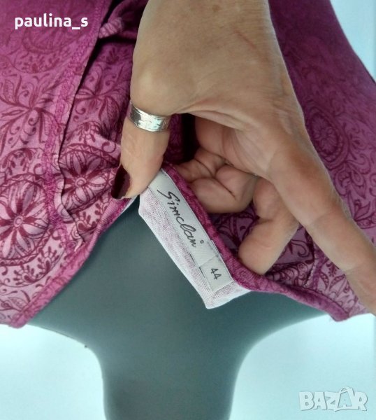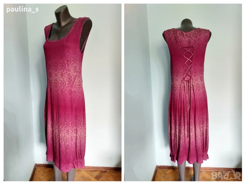 1️⃣. Колаж / XL / 3XL - "Simclan". Цената е крайна 34,99лв / 17 евро. Еластична дизайнерска рокля във весел малинено-лилав принт, нова без етикет. Материята е памук и вискоза, еластична и покрива няколко размера - хипоалергична, без дефекти, една бройка. Моделът е с декорации в страни, платкте са без оверлог и с контрастни тегели.
