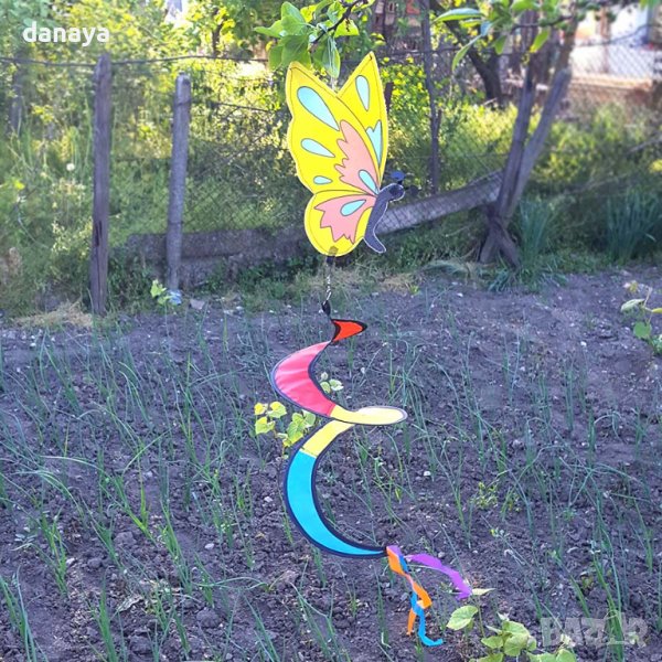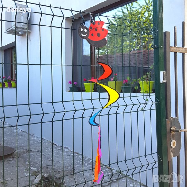 Цветна, въртяща се и весела ветровъртележка с животинче на върха. Ефектна украса за градината или балкона, декорация, която ще внесе настроение и цвят, където и да я поставите! Много подходяща е и за прогонване на вредители.